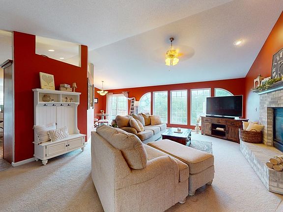 WONDERFUL 4 Bedroom, 3 Bath, 3900 SQ. FT. RANCH w/ WALK-OUT Finished Basement on CUL-DE-SAC w/ BEAUTIFUL VIEWS! Spacious Great Room w/ Vaulted Ceilings, Gas Fireplace & Wall of Windows overlooking Trees & Green Space. Open Floorplan connects Kitchen w/ Stainless Appliances, Custom Oak Cabinetry, Natural Colored Countertops & See Thru to Great Room. Breakfast Room in Kitchen w/ Side Window, Connected to Sitting Room w/ 8 Ft. Bay Window & Dining Room w/ Double Sliding Doors to Spacious 20 x 14 Cedar Deck w/ Beautiful Views & Stairs to Lower Level 35 x 14 Covered Patio w/ Dark Brown Metal Finish under Deck & Curtains! Large Primary Bedroom Suite w/ WIC, additional closet, Jacuzzi Tub & Stand Up Shower. Nicely sized Second & Third Bedrooms & Full Bath complete Main. Wonderfully Spacious Finished Walk-Out Basement w/ 9 ft. Ceilings includes Large Family Room w/ Floor to Ceiling Stone Gas Fireplace, Second Kitchen, Fourth Bedroom, 3/4 Bath & 2 Storage Areas! Fenced Backyard & 3 Car Garage!