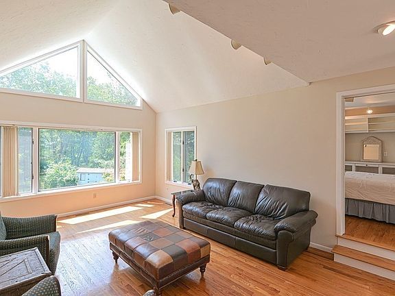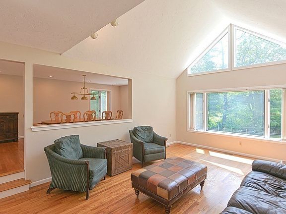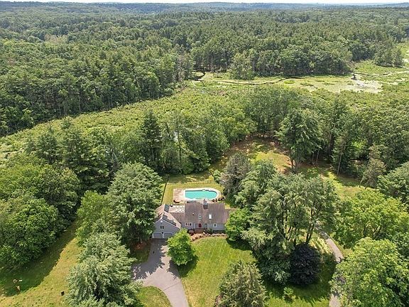 Lovely contemporary home located on over 2 acres of land, set back from the road in a desirable South Natick location. This open & bright home offers a large open kitchen & sunroom w/eat-in area, formal dining room w/ large windows & a welcoming living room w/ fireplace & large picture window. Primary suite w/ a beautiful newly added full bath w/ tiled shower & W/I closet also located on the first floor. Second bedroom & full bath also on the first floor. Through the kitchen, step up to the family room w/ wood stove. Laundry room & an oversized cedar closet offering additional storage space or convert to add living space on this level. Second floor houses 2 additional bedrooms, both w/ HW floors & skylights & an additional full bath. The yard is your own private oasis w/a large deck that overlooks the inground pool & fenced yard; a private setting that backs up to Broadmoor Wildlife Sanctuary. Fantastic location, minutes to Downtown Natick, restaurants, shopping & highways.
