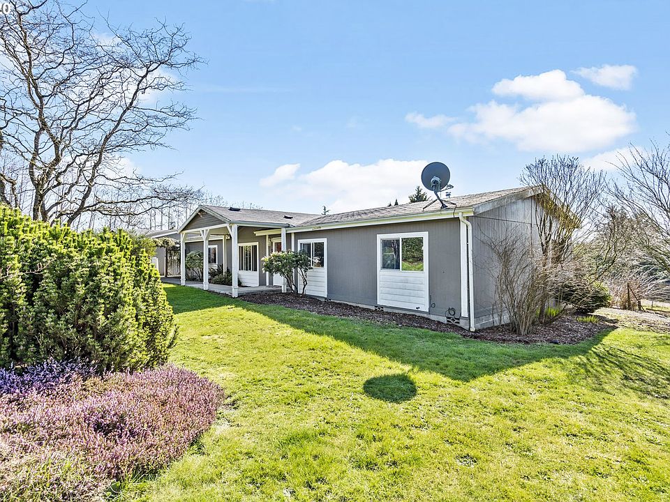 Quiet and secluded 4 bed 2 bath home on 5+ acres in Castle Rock with beautiful views. Large master bedroom and bath with three additional bedrooms. Living room and bonus room with built ins and wood stove. Open kitchen with gorgeous views of the property and trees. Double car garage with plenty of parking. Property includes outbuildings, greenhouse, fruit trees, and chicken coop. If you are looking for peace and quiet with plenty of usable land, this is for you!
