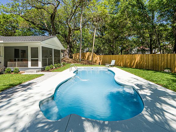 Nestled amongst huge live oaks on a quiet cul-de-sac on a half-acre private, park-like lot, this completely renovated 4 bedroom, 3 1/2 bath one story house offers everything to be desired in the perfect IOP beach house, close to beach access and the marina. No detail spared with open floor plan, a huge seven seat island with custom cabinets, wet bar with ice machine and beverage fridge, and a classic white enamel 48'' Viking stove. The backyard features a spacious screened in porch overlooking the pool and stone patios and a powder room with convenient access from the pool area. Two ensuite bedrooms are perfect for family and guests. Many updated features including Rinnai tankless water heater, new roof and all new fixtures throughout. Located in the desirable Forest Trail neighborhood.This home has a STR license and a rental projection of $206,000 a year.
