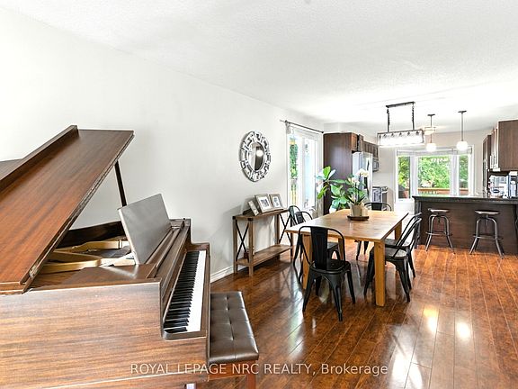 Beautifully Updated 2-Storey Home in a Prime Location! This stylish and well-maintained home has been tastefully renovated and lovingly cared for, offering over 2,300 sq. ft. of living space a perfect blend of comfort, function, and charm. Ideally situated near shopping, restaurants, top rated schools, the scenic Welland Canal trails for biking and water sports, plus quick access to Hwy 406. From the moment you arrive, you'll be impressed by the concrete driveway with parking for up to 6 vehicles, matching walkways to both the front entrance and backyard, and the attractive garage door on the attached 2-car garage with opener. Inside, the open-concept kitchen features stone countertops, abundant cabinetry, a bay window, and built-in appliances, connecting seamlessly to the dining and living spaces perfect for entertaining. The main floor family room is a true standout with its full brick feature wall and wood burning fireplace, plus sliding doors leading to an expansive deck with built-in pergola. A convenient 2-piece bath and laundry closet complete the main level. Upstairs, you'll find 3 generously sized bedrooms, including a primary suite with private 3-piece ensuite with a full-sized shower, plus a 4-piece family bath. The finished lower level adds even more living space with a cozy family room complete with built-ins, a home theatre speaker system, and an electric fireplace. An open area offers flexibility for a games room, workout space, or hobby area, along with a 2-piece bath and a versatile nook perfect for kids or a home office. Additional highlights include: storage shed, fire pit area, huge deck with pergola, gas heaters, outdoor dining table and chairs (included), and an above ground pool, all set within a private backyard surrounded by mature trees. Don't miss this turnkey home offering space, updates, and a location you'll love!