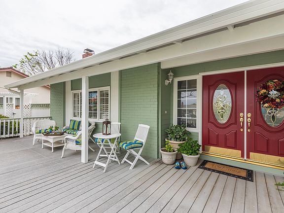 This incredible six bedroom home includes two master bedrooms. One is a huge upstairs suite with fireplace, large walk-in closet, extra storage, and exterior balcony. The space can be used as an alternative great room. The home conveniently has three rooms upstairs and three rooms down stairs. Adding character to this home is a large, classic covered front porch that creates a welcome feeling and an even better functional appeal. Both front and backyards are neatly manicured and include mature fruit trees. (fig, lemon and orange) Additionally the home features efficient dual pane windows throughout, fully renovated bathrooms and updated flooring, including new front tile entry and newer interior paint and carpet. The kitchen is improved with Silestone counters, stainless steel appliances, Hickory cabinets and tile floors. Downstairs master bedroom has a walk-in closet, sliding door to yard.