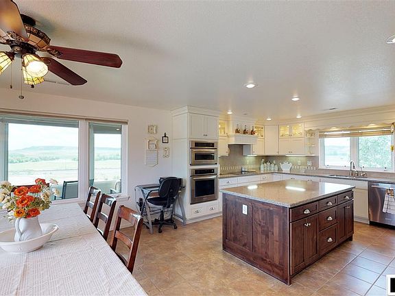 Amazing views & privacy located within minutes of Glendo Lake marina & boat dock. This home has large updated kitchen & open floor plan perfect for entertaining, enclosed porch, large deck w/fire pit, model train set, plus additional living space w/kitchen downstairs perfect for B&B entrepreneurs. The outdoor spaces are just as spectacular w/views of Laramie Peak and private ranch land. There are 3 buildings capable for storage or rental income, RV hookups, horse barn and a riding arena.