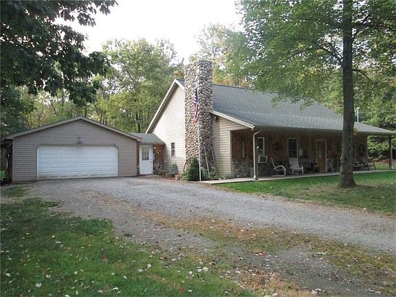 Secluded and private! Karns City Schools. Your own personal oasis and 19 entirely wooded acres of property! Very level property with walking trails to each corner. Amazing home with beautiful vaulted ceiling living room featuring a hand laid cobblestone and log fireplace, Huge eat in kitchen with oak cabinets and tile floors overlooking the private back yard. Front porch runs the length of the home and is 52x7. A 10x10 mud room attaches the home to the 26x24 garage. Sheds and added carport offer extra storage.