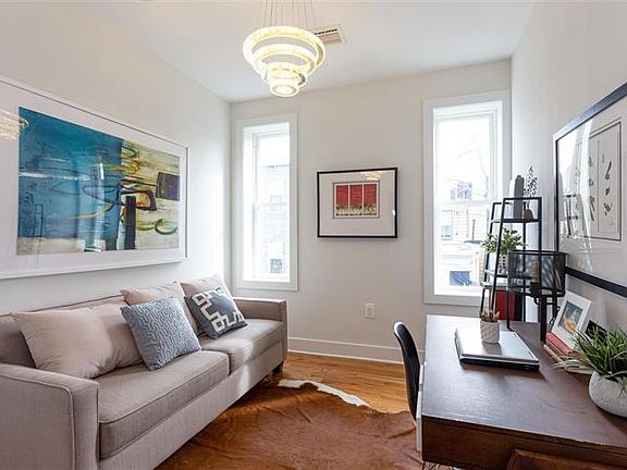 What better way to spend this summer than on your new oversized rooftop deck at 260 Griffith Street? Enjoy all that Jersey City Heights has to offer with the feel of a Downtown Jersey City Brownstone. This one of a kind brick home is nestled along a tree lined street. This sun-drenched and spacious 1200 sq ft 3 Bedroom, 2 full Bath home is grand, yet cozy. The solid oak hardwood flooring throughout is complemented by red brick walls and towering 12 ft ceilings. The Cashmere Carrara quartz countertops, Bosch SS appliances and white Shaker cabinets are accentuated by open concept and natural light in the kitchen and living room, reinforced by a skylight, making the space ideal for entertaining. The elegant European style bathrooms are both adorned in Porcelanosa tile, toilets, and fixtures, Hansgrohe plumbing, and include Fresca vanities; the master suit is fitted with double vanity sinks, huge walk-in shower with Hansgrohe fixtures. This unit boast over 1050 + sqft of private outdoor space; exclusive use of the roof-deck is deeded to the unit. Other features include: Ring Intercom, Nest thermostats, Sonos surround sound with Pyle speakers everywhere, including the roof-deck, pre-wired for an internet wall mounted TV's and in-unit Samsung Washer Dryer. Great Location. Owner has leased parking until April 2021. Under 30 minute commute to Port Authority and 45 minute to WTC via public transportation. Brought to you by Gold Coast Developers, with years of experience in revitalizing single and multi-family luxury homes in Hoboken, they're excited to bring their expertise and craftsmanship to the Jersey City Heights.