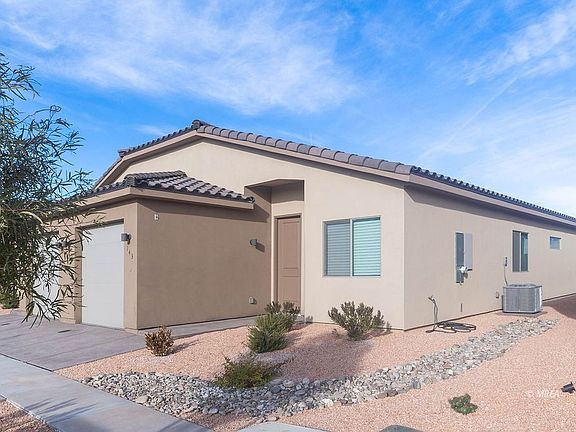 This delightful 3 bedroom 2 bath town home with open floorplan and a spacious 1533 sq. ft. Recently built in 2022 with part time use. Located in the newly developed Hilltop Vistas Community elevated above Mesquite. Inside you will enjoy beautiful granite countertops in the kitchen and bathrooms with shaker style cabinetry, undermount sinks, plank style tile floors throughout the home. Walk in main bath shower with porcelain tub and tile surround in second bathroom. Stainless steel fridge, range, microwave, and dishwasher compliment this kitchen. Ceiling fans in the main bedroom and living room. Large 8 ft doors throughout with a 12 ft wide x 8 ft high sliding glass that overlooks the valley and has spectacular views of the mountains. Oriented facing east so you can enjoy evenings in the shade on your extended patio. THE VIEWS ARE SPECTACULAR. Access to resort style amenities. Builder warranty will be transferred to new buyer.