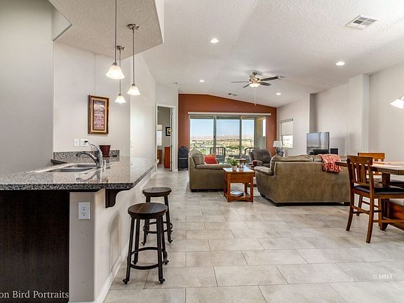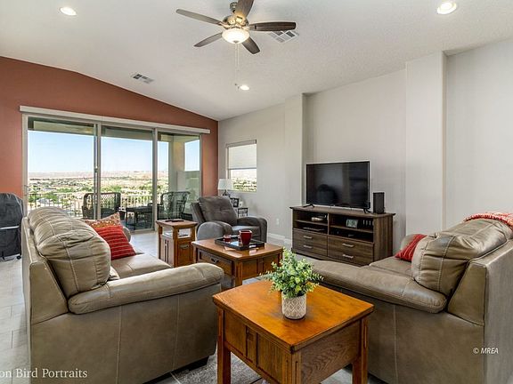 This townhome is less than 1 year old. Grandma misses her family back in Washington and is moving back to be near them. The unit sits on a hilltop and features one of the most spectacular views in the city. It has the southwestern stucco exterior and the inside is very modern with light gray walls and tile throughout. A very open floor plan with a kitchen featuring granite countertops/breakfast bar and stainless steel appliances. Washer-dryer, water softener and all window coverings are included. All the bedrooms are roomy with the master on the opposite end of the unit from the other 2 bedrooms. HOA dues include membership in the Mesquite Vistas Country Club which feature a large outdoor pool, hot tub, tennis court, pickleball court, workout room and much more.