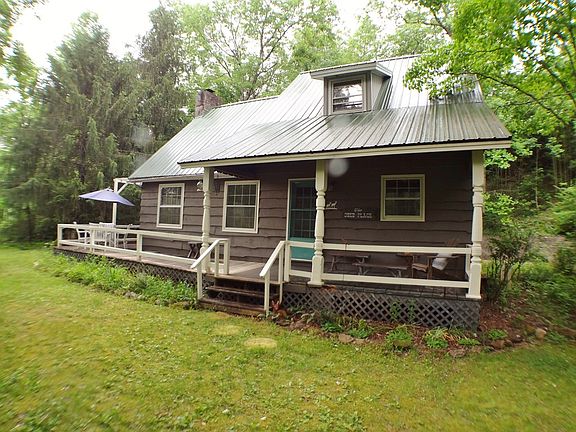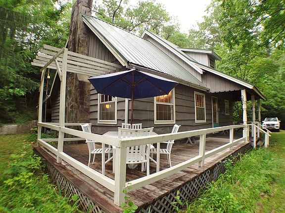 "Cute as a button", private, cabin in the woods. This place is so charming it warms your heart as soon as you drive up. Come sit a spell on the covered front porch, sun on the deck or wait a while and sit around the fire at the fire pit. Nestled in the trees it's dark for star gazing on a clear night. Inside is just as charming with an open floor plan and cathedral ceiling above the living and dining room. More features in this cabin are a stone fireplace, wood floors, three bedrooms and one and a half baths. A whole house attic fan will bring cool air in on warm summer night. It's one of a kind and won't last long and comes fully furnished.