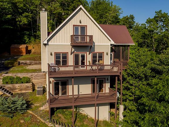 "Spacious one of a kind prime location home with breathtaking views of Lake Santeetlah and long range mountain views from every porch and decks. Almost brand new, built in 2007 with recent improvements.Coupled with sophisticated finishes and natural materials. Open Kitchen features ample counter space with additional bar stool seating area. Living room offers a wood burning fireplace, large picture windows and French doors with easy outdoor porch access. Spacious entertainment space downstairs includes a movie room with dry bar. Has a great rental potential. Large Master on the main level includes an ensuite bathroom with double sinks. 2 spacious bedroom upper level. Low-level theater room.