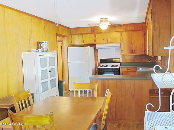 Step inside to find a cozy living room warmed by a gas heater, with a wood/glass door and pocket door providing privacy when desired. The home is equipped with six ceiling fans to keep you cool in the summer months. The spacious kitchen features a gas oven/range and all kitchen appliances, which convey with the sale. The washer, dryer, and stand-up freezer are also negotiable.