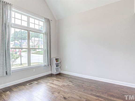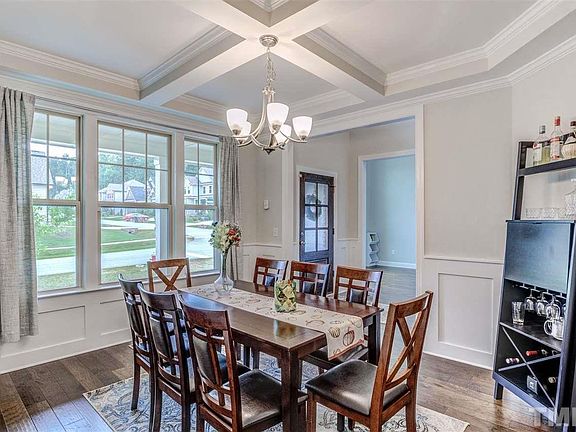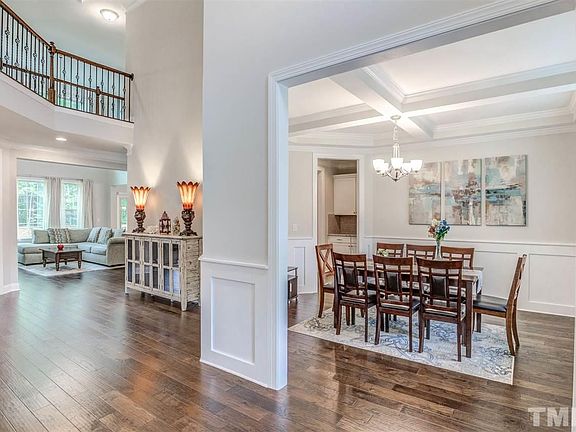 Beautiful Brick -front home with extensive upgrades in desirable Southerlyn. 5 bedroom/5.5 bath plus Bonus. Private backyard&wooded view! 2 story open foyer & Great room with extra lights. Formal Dining and Study w/a vaulted ceiling. 1st Flr Guest Suite boasts sitting area w/private bath. Gourmet kitchen with SS APP & Granite opens to Great RM and Family RM w/fireplace. Master BR w/sitting area and luxurious bath leads to a massive closet!!Finished 3rd floor w/a full bath! Just minutes to I-540; RDU &RTP.