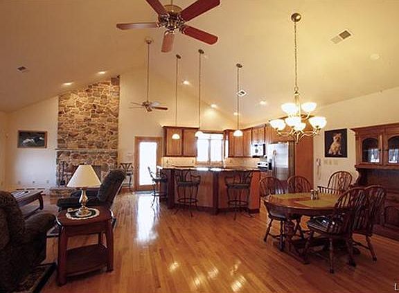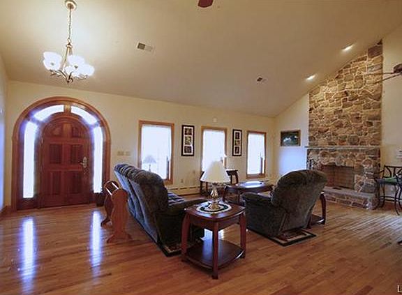 ESTATE SACRIFICE! Property listed at less than one half of the price it cost to build it. Unique property. It could be be a car buffs dream or just what someone with animals would want. Property is located on 13.75 acres of rolling meadows with panoramic views. Large wrap around covered porch with built-in fireplace. Living area was constructed with the best materials. Open concept living room/kitchen/dining area with stone fireplace. Large first floor master bedroom suite with covered balcony and full tiled bath featuring 2 head shower, soaking tub and walk-in closet. Three door garage could accommodate four cars. 46 X 30 showcase garage would make a great family room. Eight zone radiant heat.