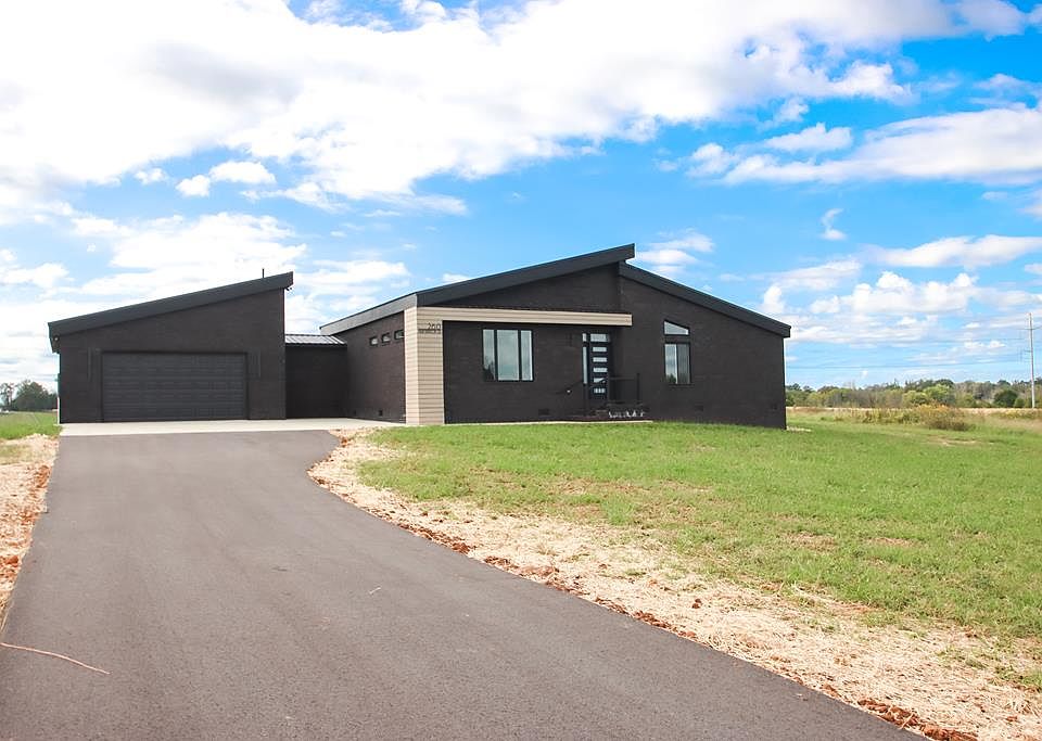 This one is different!! Step into pure sophistication with this over-the-top modern masterpiece. Every inch of this stunning home has been designed with luxury, comfort, and cutting-edge style in mind. Fully Brick, one level, with open-concept layout, soaring tongue and groove ceilings, and views that perfectly frame the countryside. The gourmet kitchen is a showstopper—featuring quartz countertops, waterfall quartz island and upgraded appliance package. The primary suite feels like a private retreat with stunning walk in tiled shower and heated tile floors. Every detail of this home exudes quality and modern elegance—from sleek fixtures and stunning features to upgraded lighting, flooring, and trim. Outside, relax and unwind on the concrete patio and enjoy the panoramic views from the perfectly manicured yard. complete with ring cameras , nest thermostats, high performance insulation package and EV plug ready this home has everything you are looking for and more.