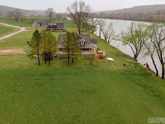 Paradise is at your fingertips! This riverfront home is a blank slate waiting for your finishing touches. Enjoy the view of the framed White River from your hot tub on the back deck. With about 100 feet of White River frontage, this property has so much to offer. Watch the bald eagle nest in the distance or put your kayaks in for a day of fishing bass, catfish, Trout, Sayger, Walleye, Drum, Buffalo, or many other types of fish. The home's exterior shows stunning craftsmanship and the limestone bluffs' view is un-comparable. With a recent burst pipe, the home had to be gutted. But with a little work, you can restore it to your liking. The property is located in a gated subdivision with no HOA fees. There is a storage facility and a boat ramp located in the neighborhood.