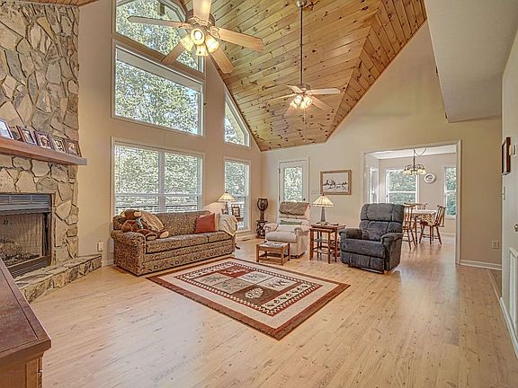 This is what you come to the Mountains for ! Trackrock Cabin on 2.7 Acres of Privacy. Move in Ready and can be Sold Furnished! Walk to US Forest Service Land ! 2 Bedroom/ 2.5 Bath with Master on Main, Open Floor Plan, Floor to Ceiling Stone Fireplace, Beautiful Wooden Cathedral Ceilings, a Nice Mixture of Sheetrock and Wood, Spacious Kitchen and Dining Area right off of the Kitchen. Don't forget the Full Partial Finished Basement with a Large Rec Room and a Two Car Garage. Covered Front Porch and Back Deck too ! Private Wooded Setting and with a Little Tree Trimming you could have a Wonderful Year Round Mountain View ! Inventory is LOW in Sought After Trackrock.. This will not last.