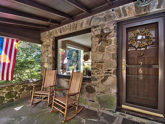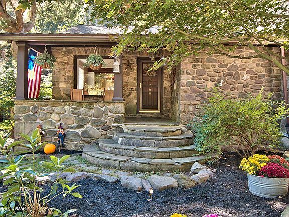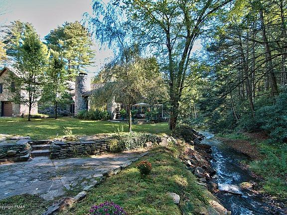 ENCHANTING and PICTURESQUE STONE HOME is a true representation of Pocono Mountains Architecture and augments a 1935 Heritage with enhancements beyond compare. Beautifully updated, it retains much of its original charm. Boasting 3+bed/3 bath on over 2 acres, buffered by tall trees. Be one with nature year round! Enjoy views of Paradise creek, known for the best Trout Fishing around, in your floor to ceiling window room. The Great Room is the Heart of the Home with a wood paneled,two-story cathedral ceiling and stunning stone fireplace that spans the height of this unforgettable addition. This Home Down the Lane is only minutes to I-80,shopping and all POCONO ATTRACTIONS.Truly one of a kind and featured in the Better Homes and Gardens Distinctive Homes Collection. Call for your private tour!
