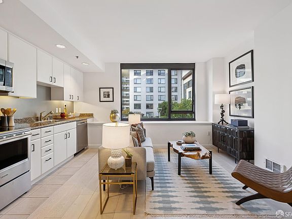 This charming JR.ONE BEDROOM offers a peaceful courtyard view and is bathed in natural light, creating a serene living space. The well-designed open living area features convenient in-unit amenities, including a washer and dryer, new stainless steel appliances, granite countertops, white oak floors, and generous closet space. Residing in The Beacon provides a resort-like experience within a full-amenity luxury building. Residents enjoy access to a heated pool, spa, gym, clubhouse, conference room, dog walk, 24-hour security and concierge services, and onsite management. Located in the vibrant Mission Bay neighborhood, the building is steps away from various cafes, restaurants, shopping options, parks, and the Chase Center. Its proximity to freeway access, Caltrain, and multiple bus lines makes it an ideal location for all commuters.