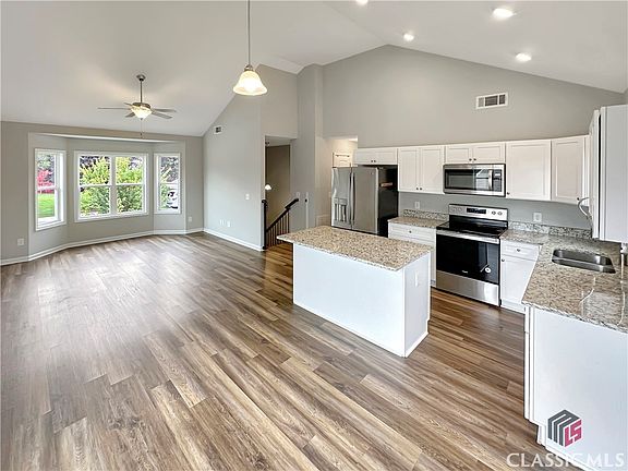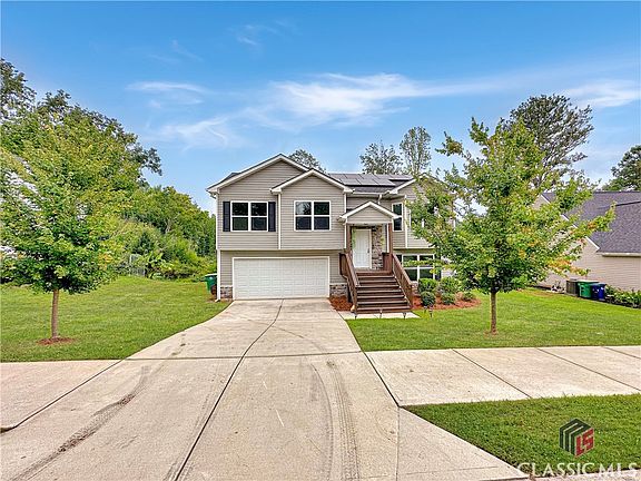 Come and view this home 10 minutes from UGA and close to the kids elementary and middle schools. This like new four year old home has 4 bedrooms and 3 full bathrooms with an open floor plan with two living spaces one on the upper level and one on the lower level. Walk in the front door where you will find on the upper level LVP flooring throughout the entire home. The Eat-in Kitchen has a large island providing additional storage space along with plenty of counter space and cabinets including stainless steel appliances and granite counter tops. There is under cabinet lighting and a garbage disposal in the Kitchen. There is a breakfast area off the kitchen and is open with vaulted ceiling to the Living Room with a bay window with views to the front lawn. There is a lot of natural light which makes the home inviting and bright. The back deck is off the Kitchen for your grilling and relaxing in the morning or evening. Walk down a hall to the Master Bedroom that has a trey ceiling and views to the backyard. The Master Bathroom has a double vanity with a separate shower and garden tub. Additional two bedrooms and guest full bathroom are on this level. On the lower level is a large storage closet, second Living Room, Bedroom, full Bathroom and washer and dryer closet. The garage and a closet within the garage has a second wash machine. There is a back door in the garage which goes to the backyard. There is wiring for a fan in the Living Room on the lower level if the new owner wants to install one. Each bedroom has a light and ceiling fan.
