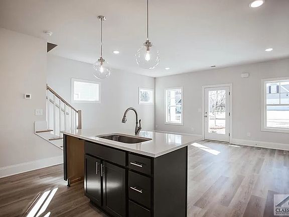 1st floor - open, common living area with a stylish kitchen; a large island, pantry, and stainless appliances. Additionally, the 1st floor consists of 1/2 bath, hallway to back door, back porch & patio, an attached 1-car garage plus 3 more driveway car parking.