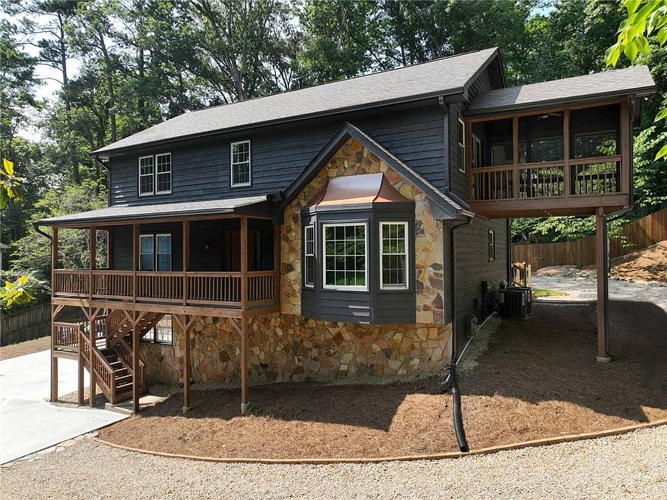 Seller said sell - $40k price reduction! Come take a look at this fully renovated home tucked away on a quiet, tree-lined cul de sac just eight minutes from the charm and culture of downtown Roswell. Set on a private ¾ acre wooded lot where deer wander through the trees and the hum of the city feels a world away, this four-bedroom, two and a half bathroom sanctuary was designed for the outdoor enthusiast! From the moment you turn onto the oversized driveway, there's a sense of welcome that’s rare and real. Whether you’re towing an RV, trailering your ATVs, or simply arriving home after a trip to the Roswell farmers market, there’s space — and soul — here for every rhythm of life. A fully renovated cabin-style home where modern comfort meets organic warmth. Step inside and discover a kitchen that doesn’t just serve — it stuns. Veined Picasso marble stretches across the counters like art, anchored by brand-new stainless appliances and a large pantry designed for those who live — and cook. The primary suite contains vaulted ceilings with hand-hewn beams, a walk-in closet and a private screened-in porch where morning coffee becomes a ritual of stillness and songbirds. The en suite bath is an echo of luxury, with a double vanity and large custom shower. The remaining upstairs secondary bedrooms are all good sized with hardwood floors throughout. The basement has also been finished, perfect for a craft room, toy room or man cave! Outdoors, this property invites adventure. Morning hikes, muddy boots, dirt bike joyrides — or simply an afternoon curled up on one of the brand-new decks, watching the deer slip silently through the trees. This isn’t just a yard. It’s a private preserve. Every inch of this home has been renovated to tailor to those who crave character and maintenance free living for years to come. All the large ticket items have been taken care of! Roof is 3 1/2 years old, water heater and HVAC are less than 1 year old. The neighborhood offers optional HOA membership. Residents can enjoy access to a community lake—perfect for kayaking, boating, or fishing from the neighborhood dock.