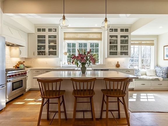 - Features: Bathroom - Half, Wood / Coal / Pellet Stove, Flooring - Hardwood, Window(s) - Bay/Bow/Box, Dining Area, Countertops - Stone/Granite/Solid, French Doors, Kitchen Island, Cabinets - Upgraded, Deck - Exterior, Exterior Access, Open Floorplan, Recessed Lighting, Remodeled, Stainless Steel Appliances, Gas Stove, Lighting - Sconce, Lighting - Pendant, Lighting - Overhead