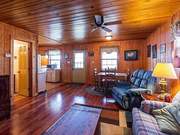 RiverView Cabin!! Tucked away in a private location, this cute cabin has waterviews!! Rustic wood ceilings, walls, and flooring adorn this adorable get-away!! Featuring an open living/dining/kitchen concept with full bath on main floor. The wooden stairway leads to the upper level bedroom w/ half bath. An upstairs flex room could be used for bunk room, extra bedroom, or office! The awesome covered front porch offers water and Lost Creek boat dock views! Off the covered porch is an open deck, which leads to storage building and firepit area! Come and bring your boat!! This awesome waterview cabin awaits new owners!!