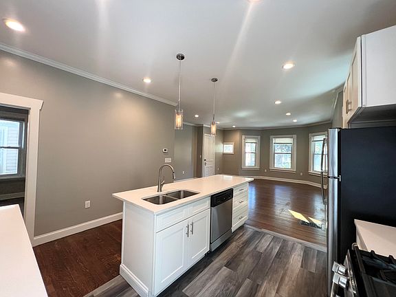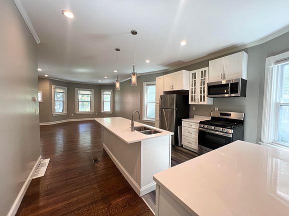 First floor two bedroom apartment. Front and rear porch access. Featuring gourmet kitchen with marble countertops. All stainless steel appliances include; stove, dishwasher, refrigerator, and built in microwave. Two bedrooms, large living room. Open concept kitchen with large island. In unit laundry. Central Air Conditioning. One potential off street parking space. A short walk from many neighborhood favorites including The Place, Kuni's Sushi Bar, Essex Street Pub, The Left Bank and many more.