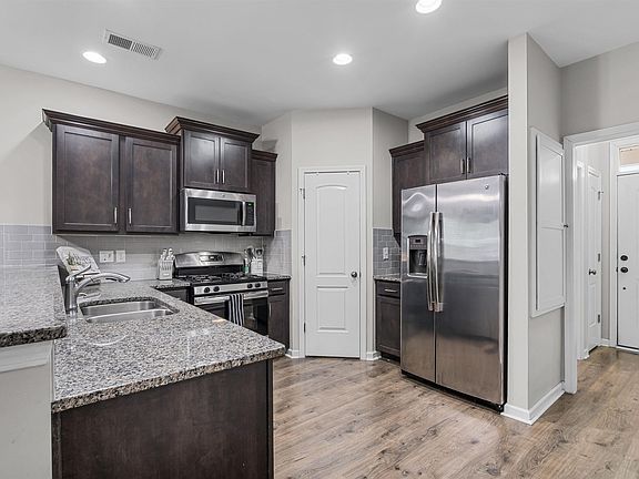 - Features: Bar, Eat-in Kitchen, Pantry, Granite Counters, Cabinets-Stained, Backsplash-Tiled, Recessed Lighting