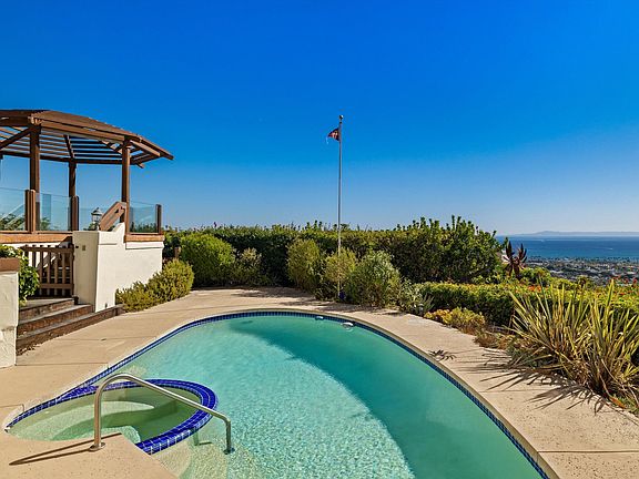 Discover this stunning Santa Barbara Riviera home with 4 bedrooms and 3 bathrooms, offering panoramic views of the ocean, islands, and city. The main level features an open layout, with the kitchen and breakfast area leading to the backyard, which includes a pool and spa. The living and dining rooms provide ample space for entertaining while enjoying breathtaking views. The upstairs primary suite boasts an en suite bathroom and private balcony. On the main level, there's a spacious bedroom with its own balcony, along with two guest bedrooms on the lower level that offer direct access to the backyard. The lower level also includes a detached studio with a kitchenette and bathroom. Additional features include attached 3-car garage, well-maintained grounds, all on a quiet cul-de-sac
