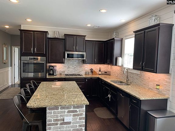 Beautiful home in "like new" condition! Hardwoods throughout majority of first floor, granite throughout baths and kitchen and kitchen is complete with recessed lighting and island, built in appliances. Owner has added shiplap ,backsplash and customized the kitchen island. Kitchen opens to family room with coffered ceilings and gas log fireplace. Full bath and bedroom downstairs, perfect for those visiting friends or guests. Upstairs boasts extremely large master suite with large sitting area, large closets and luxurious owner's bath complete with tile flooring and tile shower with bench. All secondary baths complete with tile, granite, and matching cabinetry and hardware. Oak stained stairs and a covered porch are added touches. eBuilt energy saving features and much more! 2 Refrigerators,and washer/ dryer included.