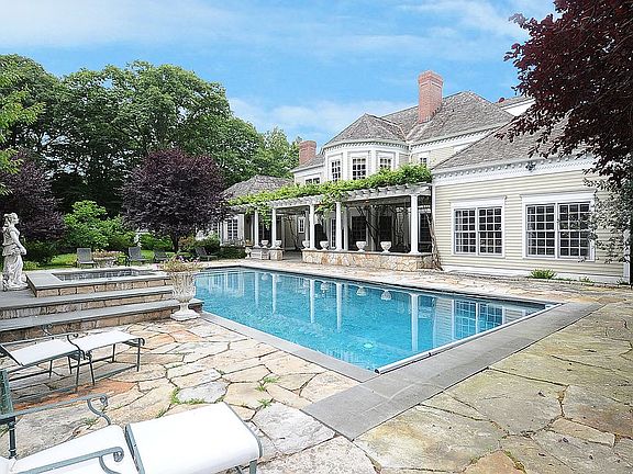 Not for sale. Magnificent 4 acre Gated Estate on Private Lane. 9,158 SF Georgian Col. 2 Story Marble Foyer, Grand Living Rm, Formal Dining Rm, Library, Sun-room, 1st Floor Master Suite with access to a separate indoor pool and Exercise Room. 5 fireplaces, Bocce Court & patio. Lower level w/Walk-Out Access has 1,450 SF In-Law Apartment or Staff Quarters w/complete Kitchen, Game Rm, Bedrm, Full Bath & Wine Cellar. Private, professionally landscaped yard, Outdoor BBQ Pavilion, heated IG Gunite Pool w/automatic cover, spa & waterfall.