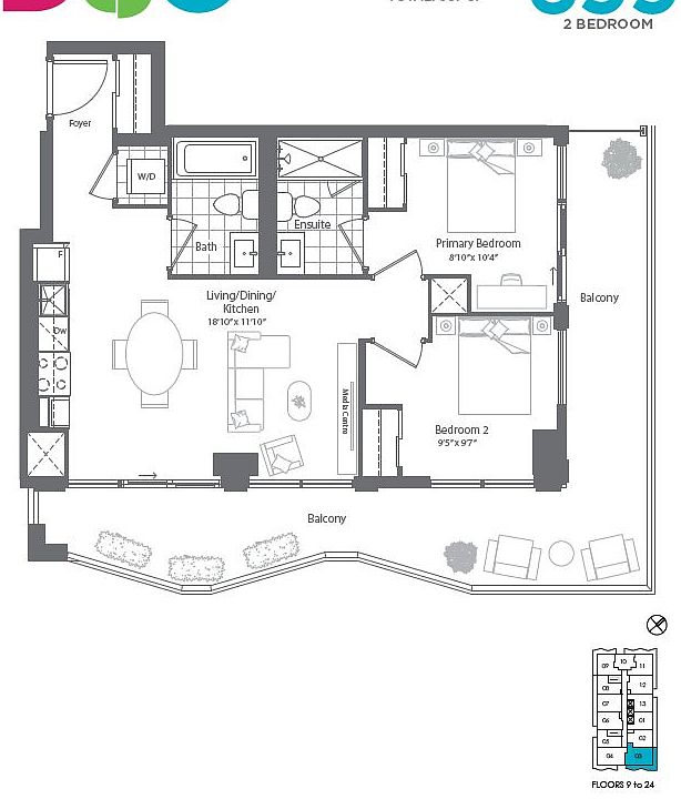 Fantastic Living In The Brand New Duo Condos. 699 sq ft 2 Bed/2 Bath + 288sq ft Wrap Around Balcony, 9' ceiling, wide plank HP Laminate Floors, Designer Cabinetry, Quartz Counters, Back splash, Stainless Steel Appliances. Amazing Amenities ready for immediate Use. Rooftop Patio with Dining, BBQ, Garden, Recreation & Sun Cabanas. Party Room with Chefs Kitchen, Social Lounge and Dining. Fitness Centre, Yoga, Kid's Play Room, Co- Work Hub, Meeting Room. Be in one the best neighbourhoods in Brampton, steps away from the Gateway Terminal and the Future Home of the LRT. Steps to Sheridan College, close to Major Hwys, Parks, Golf and Shopping.