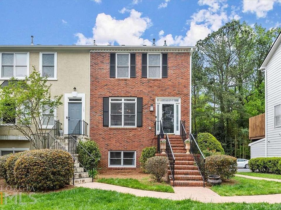 Highly sought after Townhome in Queensborough Square. Walking distance to the elementary school & minutes from Marietta Square. This end unit is perfectly located in the back of the community close to the owners-only back gate & tennis courts. Stately brick-front home w/Ring camera system conveying w/the property. Gorgeous HDW floors on main & second floor. Granite counters, SS appliances, gas range & microwave/vent. Cozy, gas-log fireplace in LR, sep DR has decorative moldings & upgraded lighting. Spacious Master w/private bath & walk-in closest. 2 additional bedrooms for guests or home office. Daylight, lower level family room also has a full bath. 2 car garage w/storage shelving remaining. Private screened porch w/open grilling deck. This home has everything you could need and more.