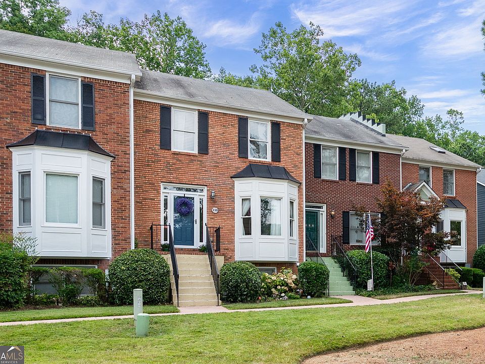 Location, Location, Location - walk to Marietta Square from this beautiful home nestled minutes from great shopping, restaurants and Laurel Park! Upgrades include new 50 gallon water heater, new deck and garage roof and updated primary bathroom fixtures - HOA covers exterior painting and home is scheduled for new exterior paint this summer. A lovely front porch welcomes you into the gorgeous open floor plan featuring wood floors and custom molding. Cozy fireplace in spacious great room - perfect spot for watching the game. Formal dining area flows easily into the updated Chef's Kitchen offering gorgeous custom cabinets, granite counters and SS appliances - breakfast bar is perfect for a quick meal Large laundry room and half bath complete the main living area of home. Upper level primary retreat is a peaceful respite at the end of a busy day featuring a private primary bathroom with soaker tub and separate shower. Two spacious secondary bedrooms and a secondary bathroom complete the upstairs. Terrace level of home is perfect for additional living space or utilize as an in-law suite - bedroom/great room and a private full bath! A comfortable deck boasts spectacular views and is perfect for everything from morning coffee to a weekend BBQ. Double garage with extra space for workshop or storage. Neighborhood offers a back gated entrance for easy access in and out of your garage. Luxurious amenities include pool. tennis courts, clubhouse and playground! Welcome Home!