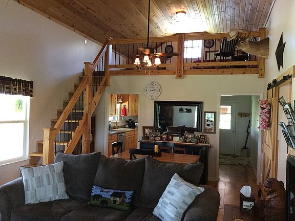 Property includes a mother-in-law house that is 14x16 with full bath and bedroom with window a/c unit and gas space heater. There is a 200' deep well, an 8x40 covered back porch and 8x40 deck with an outside shower with hot and cold water. There is a 12x16 open building with concrete slab. Hearty board house, double pane windows, foam insulation, underground utilities, and did i mention the view?