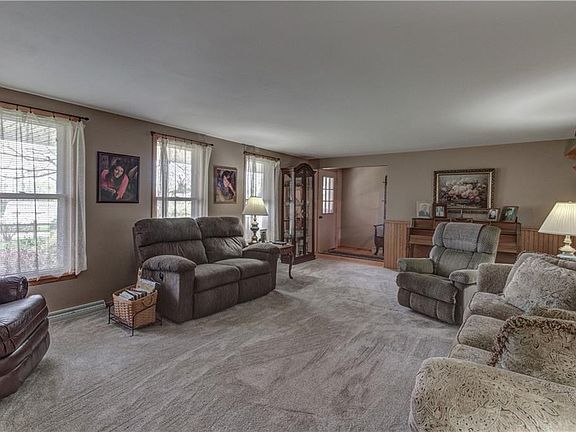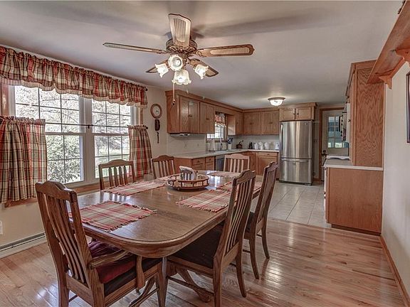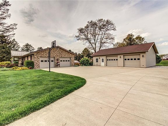 Beautiful, immaculate, and super efficient brick ranch home on 2.9 acres just 1 mile from town. This 4BD 2BA home will captivate you from the moment you drive in on the paved drive and your eyes catch all the beautiful landscaping that surrounds the whole property. Spacious kitchen and dining room with hardwood floor 2019. Furnace and A/C approx. 3 years. Metal roof on house, shed and barn approx. 3 years. Extra large 2 car attached garage plus fabulous 28x40 detached garage, 2005, with radiant floor heat and hot/cold water. Potting shed and storage barn. Plenty of room for your garden. You'll truly enjoy the beautiful water fountain and above ground pool this summer. There's something for everyone! Don't hesitate-call today!!