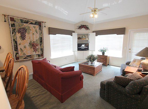 Relax peacefully in this fully furnished 3 bedroom condo! With space to spare, this is perfect for those who want a tranquil new place to stay. Sit out on the screened in porch and enjoy the sight and sound of the fountain! Just minutes from all the attractions, you can have all the peace and serenity without being far out of town!