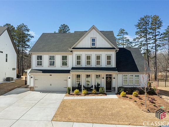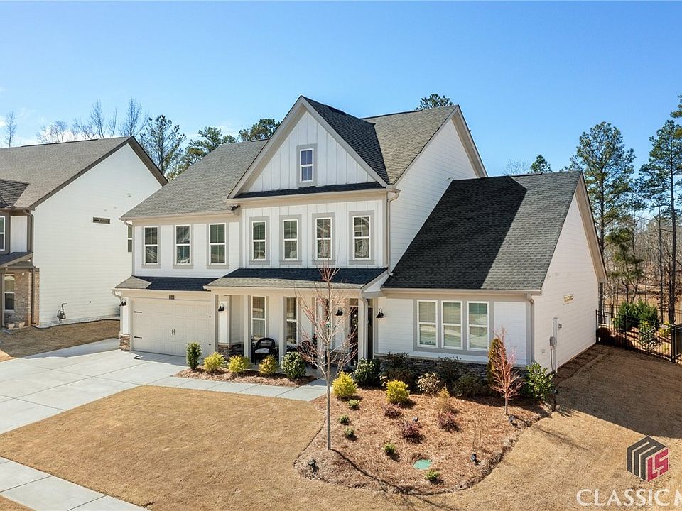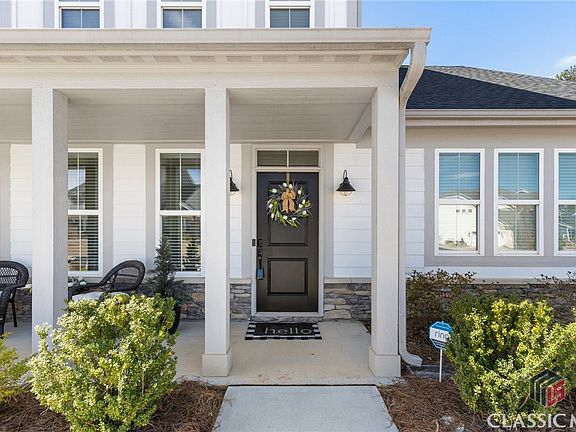 WALK OUT TO YOUR LAKE LOT AND VACATION IN YOUR OWN BACKYARD! Gorgeous custom build, by Fischer Homes, in the beautiful Twin Lakes community, featuring the Leland American Classic plan. This plan offers an amazing amount of amenities & extras. Homeowners added a resort style, in-ground, 15 x 28 salt-water, L-shaped POOL w/ water feature for your summertime needs. One of the few homes to offer a view & access to the serene LAKE flanking it. Covered pergola, tile surround, wrought-iron fencing & professional landscaping package added around the side of the home and pool make this the place you want to relax! Every view from indoors is breathtaking! Venturing inside this custom beauty, you will experience a spotless, professionally decorated home with open concept & primary suite on the main. The elegant foyer greets you & the view of the soaring two-story of windows draws you into the sprawling great room. It has updated chandelier lighting, gas fireplace w/ shiplap surround, sconce lighting on either side of fp, impressive wooden beams on ceiling & 4 oversized, floating shelves. Butler's pantry bar wall & foyer hall to bedroom, both have added shiplap for additional charm.There is a large bright & cheery kitchen w/ a gorgeous granite island, walk-in pantry, upgraded cabinetry, stainless steel appliances, including, gas cooktop w/ decorative ss vent hood & tons of storage. The dining room is adjacent to the kitchen w/ a spectacular view of the outdoor oasis! Primary suite w/ tray ceiling, chandelier, focal wall of shiplap & wood beams add lots of charm & character.The primary bath has decorative tile, shiplap accent wall, a massive, tile shower w/ dual shower heads, dual sink vanities, make-up area, & walk-in closet. There is also a two-piece powder room off the foyer for your guest to use. Mudroom off the garage with added shiplap & a large laundry room complete the main level living. Upstairs there is a large, loft media room, three additional bedrooms & a full bath. Home comes w/ professionally installed custom blinds & rattan shades. Installed Ring security system on all doors & windows, motion sensors & camera sensors in front & backyard. Two car garage w/ opener & additional 4 ft. bump out to accommodate a golf cart. Also, additional parking on the side extension of the garage for all your guests. .Front yard & backyard have extended landscape island and irrigation system installed. Amazing HOA with lots of great amenities, calendar events & a golf cart community! So pack your bathing suit and come see this incredible home! It has everything you could possibly want!