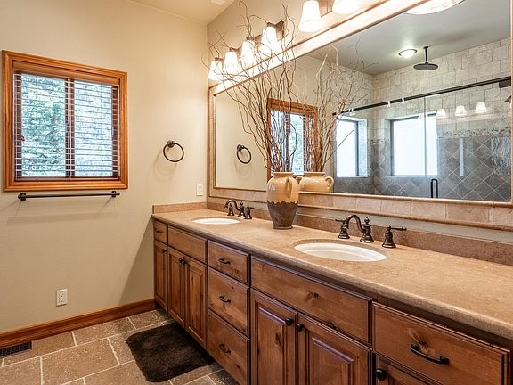 Welcome home to this fantastic mountain escape, where you'll enjoy quality and luxury in every detail. Nestled in a serene setting, this home is a haven for those seeking solace amidst nature's beauty and adventure awaits just beyond your doorstep. Easy access to Eagle Lodge, including the slopes, hiking and bike trails. The interior of the home is designed to cater to both relaxation and entertainment, with an emphasis on quality, spaciousness and comfort. This home boasts a large kitchen with walk-in pantry, dining area fit for a feast and a bright great room highlighted by big views and a stately fireplace. Downstairs, lounge in front of the fire while the rest of the crew challenges each other at the billiards table. The fun doesn't stop there however, just adjacent is the media room offering a cozy retreat for movie nights or video games. With four bedrooms, including two with en-suite baths and an additional Jack and Jill bath, there's plenty of room for family and guests to feel at home. The primary suite is a true sanctuary, featuring a spacious layout, fireplace, walk-in closet and a private office/bonus room that offers flexibility for remote work or personal hobbies. Step outside onto the expansive decks and immerse yourself in the panoramic views of the surrounding mountains, capturing the sun from sunrise to sunset. Plenty of space for outdoor living and dining and relax in a covered outside hot tub. With ample storage space in the 3 car garage, storing outdoor gear and equipment is a breeze, allowing you to maximize the outdoor lifestyle. The owners of this home have been meticulous in keeping the property in tip-top condition: the exterior has just been repainted, the roof was fully replaced three years ago, and the hot tub is professionally maintained. Whether you're hitting the trails or the slopes, entertaining guests or unwinding with loved ones, this home is perfect for creating cherished memories.