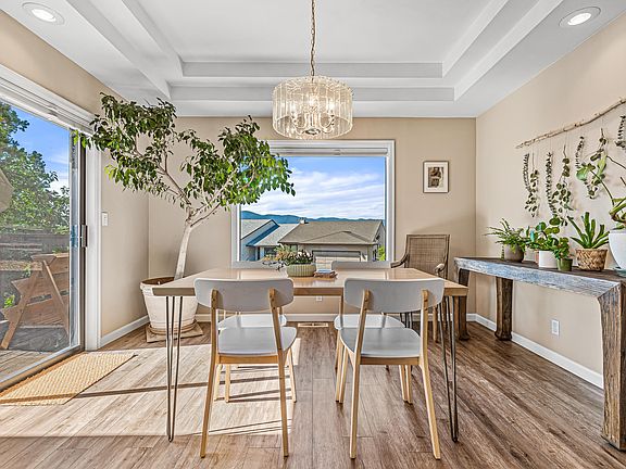 Thoroughly remodeled and upgraded end unit townhome with panoramic views in a quiet cul-de-sac of old East Medford, just six minutes from Asante, Providence, or the Rogue Valley Country Club! Main level with abundant natural light, waterproof LVP floors, gas fireplace, wet bar, formal and informal dining areas with access to private decks, kitchen with soft-close drawers and doors, two primary bedrooms with full ensuite bathrooms, guest bedroom with closet, and laundry room with half-bath. Wide staircase with room for chair lift to lower level office or potential fourth bedroom with egress window, built-in cabinets, and ceiling fan. Two-car garage with storage room. New roof in 2015, full interior renovation and exterior paint in 2021, dual-zone central heat and air conditioning system in 2022. Association dues of $235 per month cover common areas, access to clubhouse and pool, and reimbursement credit toward approved exterior maintenance. Inquire for details!