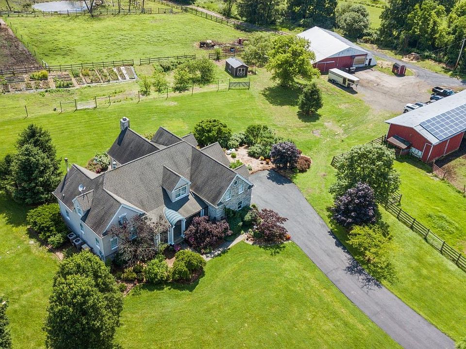 This lovingly designed and built Custom Country Farm Estate is situated atop the ridge with 29+/- acres comprised of approx 5600 sq ft home, barns, fenced pastures, pond and woods. This immaculate fresh 14 room home was built in 2003 and has 2 Master Suites plus 3 additional gracious bedrooms & total of 5 baths. Brand new recently renovated custom kitchen features restaurant quality appliances, new granite, backsplash, farmhouse sink, hardwood floors, and beautiful views from breakfast area. The open floor plan allows for great entertaining spaces and genteel living with 7 roooms on the first floor alone. Upstairs are another 5 large rooms, cathedral ceilings, custom architectural features, and quiet living spaces. The well lit ground level French door basement is finished into a media room, saloon with wet bar, another bath, and huge storage area with future expansion possiblities. Special features include transom windows, soaring ceilings, expansive hardwood floors, custom stair case, 2 fireplaces, pocket doors to allow for multi function rooms. Beautiful views from every window and French door, invite you to use the outdoor spaces including grand porches and two stone patios. This home is unique in it's self sustaining energy usage, featuring a large solar panel array, and dual fuel hot water baseboard heat, using either wood or oil. This can achieve a zero net cost energy bill. Barns and fenced pastures are ready for your dreams to be realized for country living. Currently a working cattle farm with 13 separately fenced pastures which were used for horses, goats, alpacas, llamas and sheep. The 2 huge barns are used for hay storage, livestock areas, workshop area and machine storage. The barns house a second well for farm purposes, and their own electrical service. The property is convenient to Route 78/22 corrider and minutes from either Clinton or Easton PA.