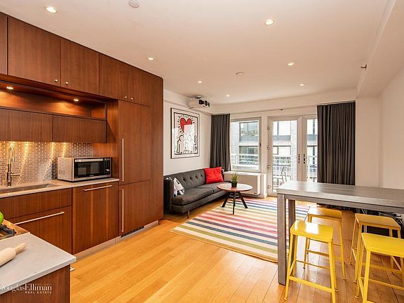 Sunny Williamsburg apartment 1 Bedroom, 1 Bathroom home boasts approximately 722 square feet of indoor and outdoor living including private balcony plus high ceilings. The home features include Gourmet Kitchen with Bertazzoni range, Liebherr refrigerator, Blomberg Dishwasher, Bespoke Walnut Cabinetry and Caesarstone countertops. Bathroom features include: Deep Soaking Zuma bathtub, Grohe Rainfall Shower. Oversized windows, Wide Plank White Oak Wood Floors, Full Size in home Washer and Dryer. Building amenities include state of the art fitness center, furnished common roof deck including views of the Empire State Building and Freedom Tower, Nearby to McCarren Park, Dine at Lilia's right around the corner, pop over to Bedford Avenue and enjoy all that this sought after Williamsburg neighborhood has to offer. Easy access to the Bedford Street L station as well as Citi Bike share on Metropolitan and Bedford. This is an amazing chance to live in this sensational Williamsburg apartment.