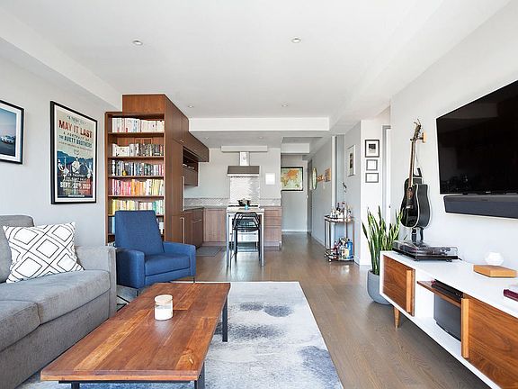 Abundant private outdoor space and premium finishes define this spectacular one-bedroom, one- bathroom Williamsburg condominium, featuring a balcony and oversized roof deck. Stunning southern sunlight invites you inside the spacious 752-square-foot home where soaring 10-foot- tall ceilings are dotted with recessed lighting and wide-plank white oak paves the floors. Relax or entertain in the large living/dining area, or step onto the roomy balcony featuring gorgeous open-sky views. The open kitchen dazzles with gorgeous walnut cabinetry, Caesarstone counters and metallic mosaic backsplashes. A full suite of upscale stainless steel appliances, including a Bertazzoni range, Liebherr refrigerator and Blomberg dishwasher, awaits your culinary skill. Sleep soundly in the bright south-facing bedroom, and enjoy spa-inspired luxury in the full bathroom finished with Italian porcelain tile, a walnut floating vanity with poured-concrete sink, Zuma bathtub/rain shower and radiant-heat floors. Head to the roof to take in wide-open views that stretch all the way to the Manhattan skyline from your private 295-square-foot private rooftop sanctuary. Fantastic closet space, in-unit washer-dryer and central air add comfort and ease to this exceptional Brooklyn home. Built in 2012, 260N9 is a contemporary, pet-friendly condominium where residents enjoy a virtual doorman system, fitness center and a common roof deck with panoramic views. From this outstanding Williamsburg location, you're just three blocks from famed McCarren Park, offering an Olympic-sized pool, running track, dog park, playgrounds, sports courts and fields, and a year-round green market. The area bustles with vintage and boutique shops, fabulous restaurants and New York's best live entertainment venues. The L and G trains, North Williamsburg Landing ferry terminal and CitiBike stations put the rest of the city within easy reach.