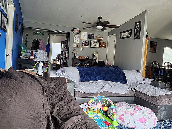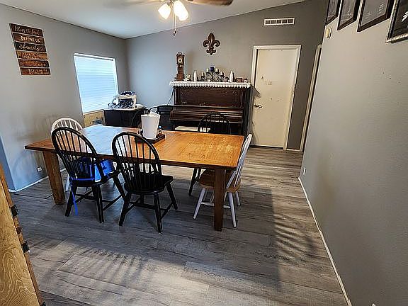 Manufactured home converted to real property with detached garage. 1 master bedroom suite and 2 additional rooms with another bathroom. Kitchen has island, electric stove and refrigerator. Laundry room with washer dryer hookups. Propane heating but we had a pellet stove set up during winter to reduce costs. Evaporative cooling with ceiling unit. Dining room off kitchen and new flooring. Brick and wood front steps and entry way brand new front and back door. Back door with built in dog door that leads to back deck down into a dog run and gate leading to back yard. Fully fenced yard. Additional house on property was converted into storage.