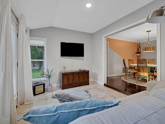 Step into this beautifully decorated one-story home in the gated community of Cape Royale. Enjoy a spacious open-concept living area that flows into the island kitchen and dining space. The primary bedroom with ensuite bath and walk-in closet sits privately at one end, while a second guest room and full bath are on the other. A walkway connects to a guest wing-ideal for a mother-in-law suite or teens-featuring its own living area, kitchen, large bedroom/bunkroom, full bath, and private entrance. Outside, enjoy a fenced backyard with storage sheds. Just a short walk across the community bridge brings you to Royale Greens Park, where you can play beach volleyball, cast a line, or relax at the lake’s edge. Residents of Cape Royale enjoy access to a deep-water marina with private long-term boat slip rentals, a private boat launch, pool, clubhouse, tennis courts, nature trail, trailer storage lot and more!