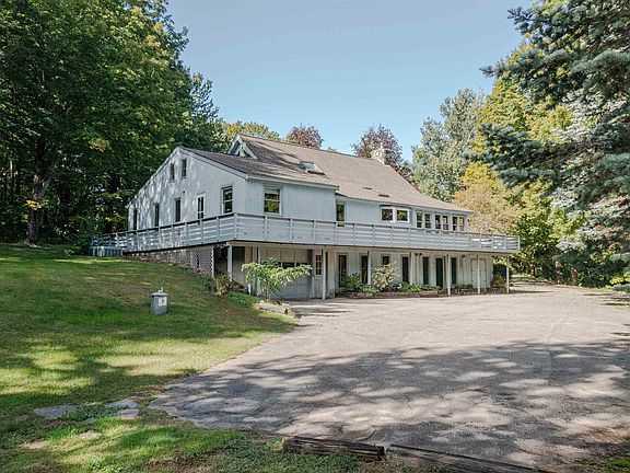 Lot lends itself to subdivision! Buyers to do their own due diligence. MOTIVATED SELLER! Majestic 4-5 bedroom A-frame home on a beautiful and private 11+ acre property with knotty pine beams, soaring ceiling, stone fireplace and an open concept layout set back off the road. The main level consists of 3 bedrooms, 3 bathrooms, a large open kitchen, dining area and living room with a gas fireplace and floor to ceiling windows overlooking the wrap around deck and large grassy yard. The loft would make a great bedroom with a large walk-in closet and skylights for tons of natural light. The finished lower level has another bedroom, a large family room with a gas stove, a half bathroom and lends itself to a great opportunity for an in-law apartment. Other features include new carpet, fresh paint, first floor laundry, central air, generator, in-ground pool with heater, large garage that could fit 2 cars, a huge wrap around deck and plenty of parking.