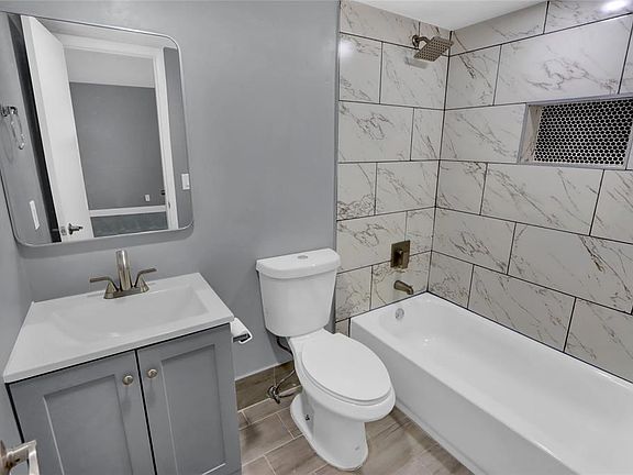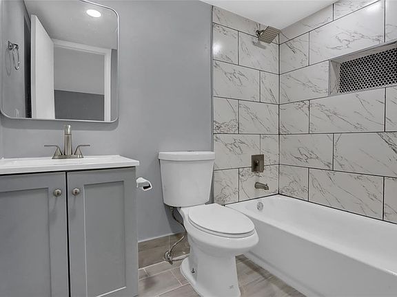 Fully renovated bathroomQuartz countertopsModern cabinetryOn-site laundry roomSleek new kitchenStylish tile flooring