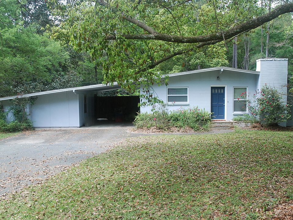 OPEN HOUSE THIS SUNDAY 2/23 FROM 12-2. PROFESSIONAL PHOTOS COMING SOON! Mid-century gem tucked away on 1-acre lot with gorgeous trees in the middle of town! This 3BR/2BA home wont last long - beautiful hardwood floors, upgraded kitchen with stainless steel appliances, double vinyl windows, and french doors that open onto a south-facing patio. The spacious living room has a beautiful fireplace with wood-burning modern insert for cozy fires on cold nights. Ideal location within walking distance to Gainesville Health & Fitness, cinemas, and restaurants. Just a 5-10 minute drive to UF and downtown. 46th Street has no outlet, so traffic is limited making it pet and child friendly. The unconditioned workshop connected to the carport could easily be converted into living space, if desired. Call today for more information!