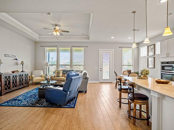 IMMACULATE ABBEYVILLE PLAN IN SOUGHT AFTER DEL WEBB COMMUNITY!!! This gorgeous light and bright home has ALL THE UPGRADES! Open floor concept with large island kitchen overlooking a spacious living area. Chef's kitchen with Whirlpool stainless appliances, pendant lighting, designer finishes and large breakfast area. Huge master retreat with spa like master bath upgrade package, luxurious shower and walk in closet. Charming covered back patio overlooking manicured fenced-in yard. The Del Webb active adult community offers a 14,000 sq. ft. clubhouse, indoor and outdoor pools, pickle ball, tennis, innovative features and an abundance of amenities in a gated community!
