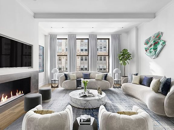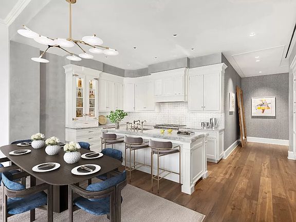 Welcome home to Apt 8DE at 260 Park Avenue South, a rare and seamless combination of two apartments totaling approx. 2900 sq ft, in the heart of Gramercy. This exceptional 4 bedroom, 3.5 bath home was completed with top-of-the-line luxury finishes in every room including custom cut and stained wide plank European oak floors with sound proofing, throughout. 11+ ft ceilings create a loft-like feel throughout the expansive living space, boasting three oversized windows facing East. This sun filled room is perfect for entertaining and features a Bioethanol Fireplace, beamed ceilings and an artisan applied Venetian plastered walls in the adjacent dining area, which can comfortably hold a table for eight. The beautifully designed open chef's kitchen comes complete with a custom Italian Bardiglio marble island with complimenting countertops. Custom cabinetry including a covered 36" subzero refrigerator with water dispenser and 18" freezer, Subzero 30" Wine fridge that can store up to 150 bottles, a Wolf 36" Six Burner Range, Miele Speedy Oven, Miele Dishwasher, Rohl and Perrin & Rowe sink hardware including instant hot water dispenser and sink garbage disposal. Each bedroom comes with generous storage and natural light that fills the spacious rooms. These rooms are also perfectly positioned next to two full bathrooms, one that has a stand up shower and the other with a deep soaking tub. The primary bedroom is a true oasis and is wrapped in a Philip Jeffries wall covering. This enormous suite has two walk in closets and a one of as kind spa like bathroom with custom Carrara Marble, a TOTO bidet automatic toilet, Victoria & Albert Barcelona Freestanding Deep Soaking tub, Samuel Heath hardware, fully enclosed floor to ceiling glass rain shower, custom cabinet with storage and two enclosed hampers. Even more unique than a Gramercy 4 bedroom is the 7 zone HVAC system (this is only 1 of 2 units in the entire building that doesn't have window units). A full laundry room & mudroom includes a service entrance and features a stacked washer dryer, folding counter, pull out ironing board, wash sink, wall mounted drying racks, luggage storage, mop storage and additional storage. Further details include Ralph Lauren wall coverings, custom moldings and hardware and radiant floors in all full bathrooms. The tech forward home is also fully integrated on a Control4 system for music, lights/art lights, shades and HVAC, with no expense spared. 260 PAS is a full-service, prewar boutique condominium with incredible service and tenured staff. The building has modern amenities that include a 24-hour doorman, recently renovated fitness center, bike storage, multiple private roof spaces with lounge chairs and space to entertain. The building allows pieds-a-terre, pets, sublets, parents buying for children and much more! Prime time location in one of the top buildings on Park Ave South!